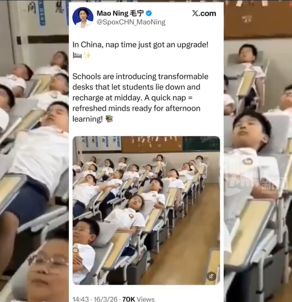 #毛宁向世界分享中国学生午睡神器#