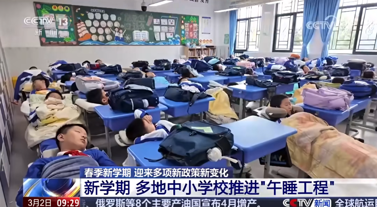 据中国教育报,深圳福田区针对午间趴睡可能损害视力、颈椎的隐患,改造午休设施,100%满足了学生“躺着睡”的需求。
